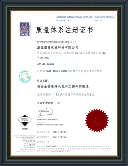 浙江諾肯機(jī)械科技有限公司(原黃巖新興機(jī)械配件有限公司)成立于1983年,坐落于浙江省東海之濱臺(tái)州市三門縣沿海工業(yè)城,現(xiàn)有員工160余人,總體占地面積40000平米。公司秉承“誠(chéng)信為本、精工細(xì)作”的精神,現(xiàn)已發(fā)展成為集研發(fā)、制造及營(yíng)銷為一體的鋁合金精密鑄件生產(chǎn)基地,為客戶提供精密鑄造、熱處理和精密機(jī)加工的一體化解決方案。